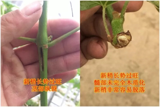 偏施氮肥容易降低地温,导致枝条旺长,木质化不良,新稍基部与母枝分离或茎裂。